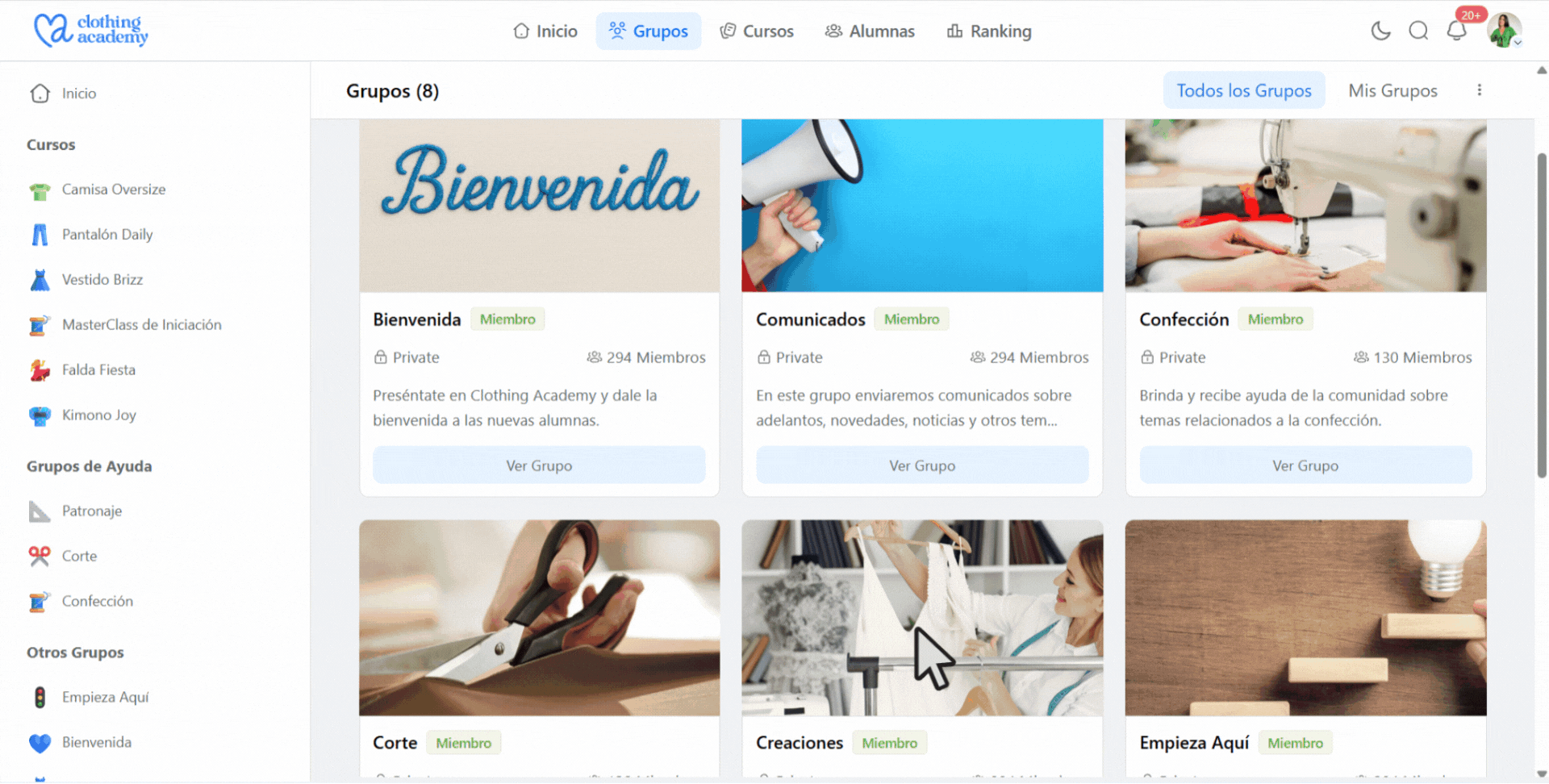 Únete a los grupos para recibir y brindar ayuda sobre los cursos y también para compartir tus creaciones